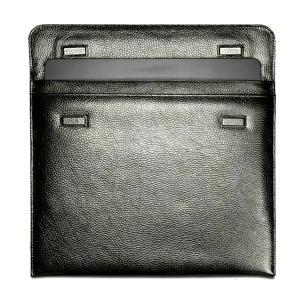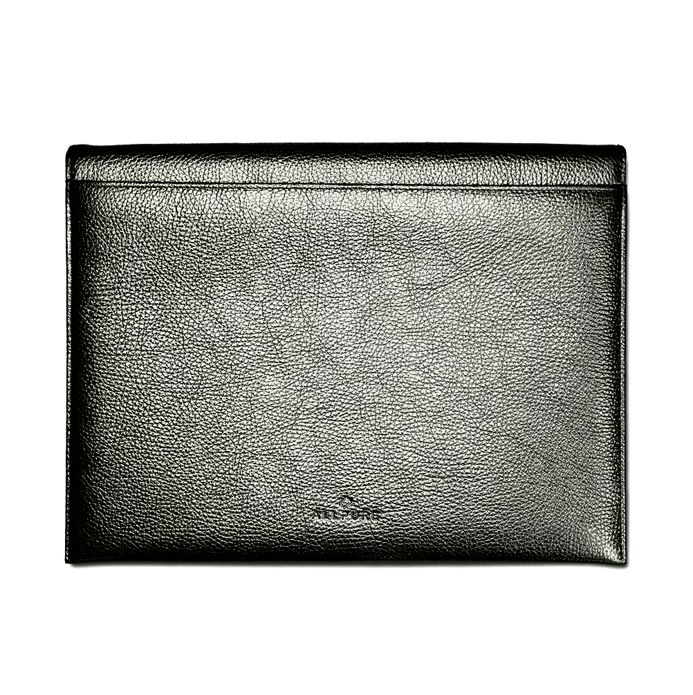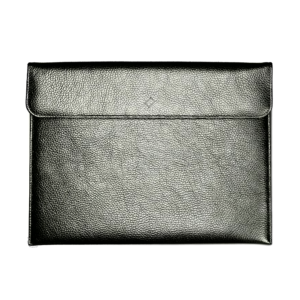 The stylish PurePrivacy laptop shielding bag "très chic" in peltro (matte, metallic gray tone) is handmade from the finest Italian textured leather with great attention to detail in our Italian partner factory andprotects in particular against: